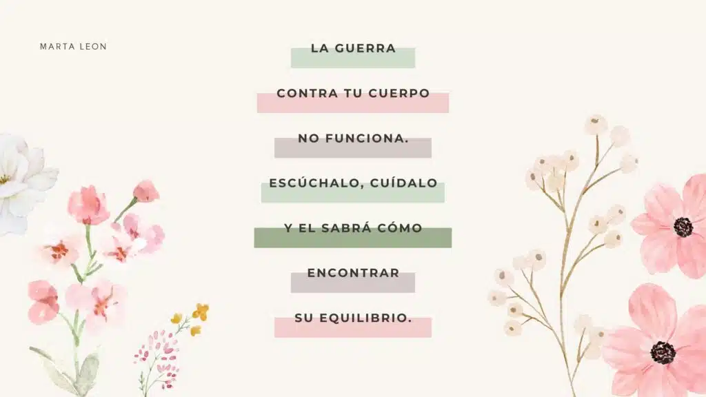 Este cambio de mentalidad es radical. En lugar de luchar contra tu cuerpo, empiezas a cuidarlo desde la escucha y el respeto. La guerra interna deja paso a una relación más amorosa y efectiva con tu biología.