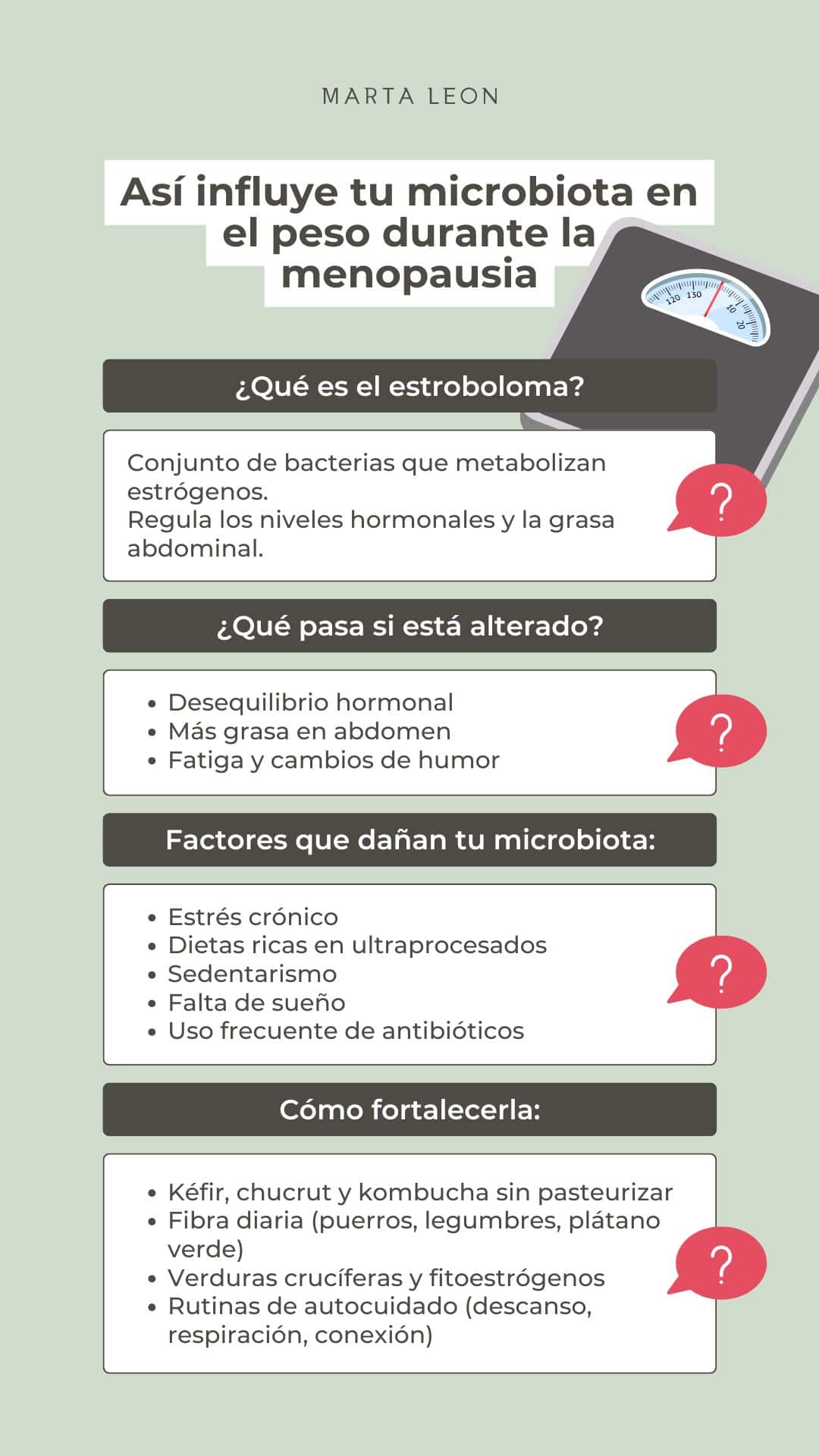 Dentro de la microbiota, el estroboloma es clave: un grupo de bacterias responsables de procesar y reciclar estrógenos. Si este “departamento” funciona bien: