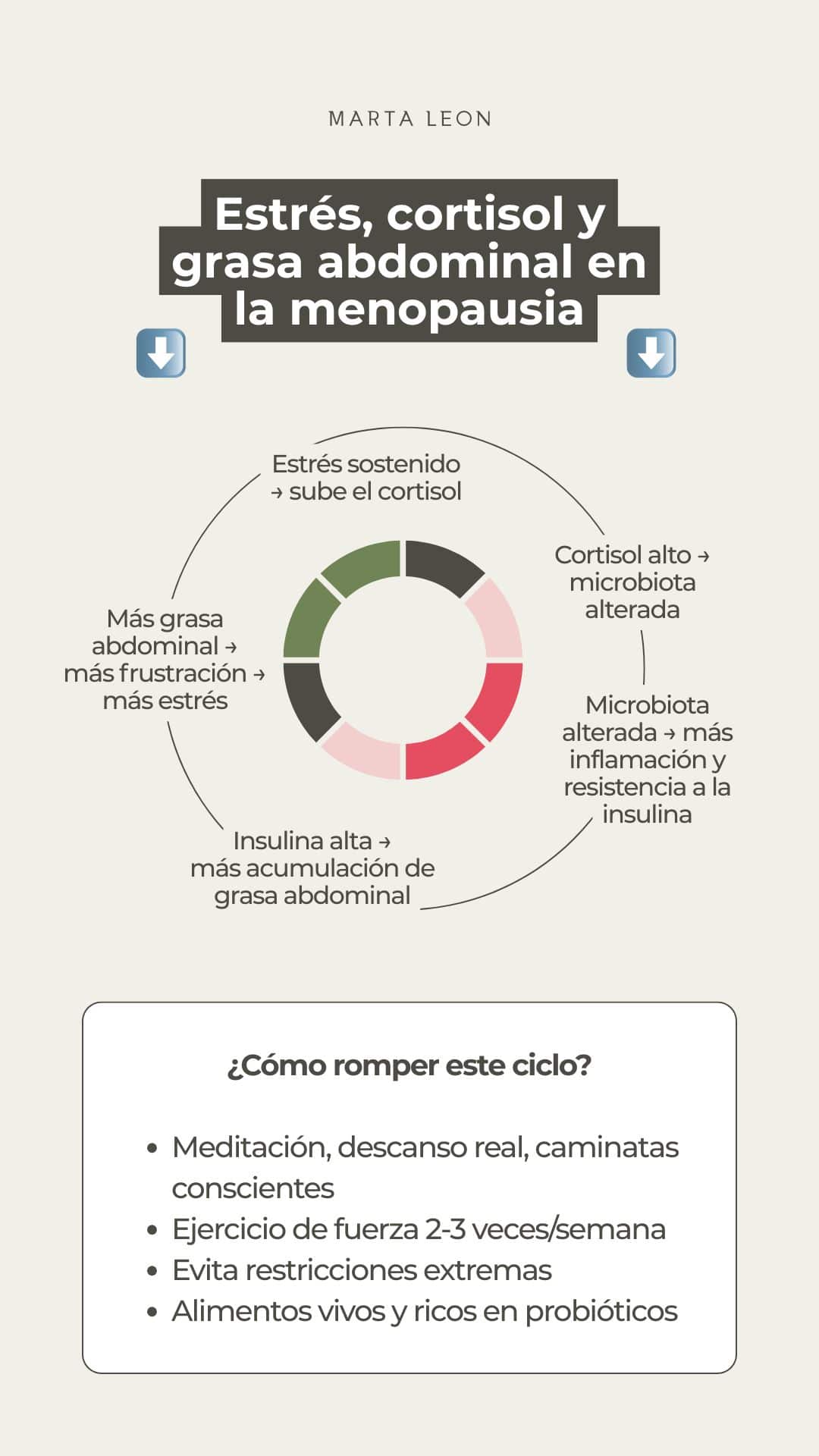 La grasa abdominal no es solo una cuestión estética: está relacionada con inflamación, resistencia a la insulina y desequilibrios hormonales. Para reducirla, es importante regular el cortisol, mejorar la sensibilidad a la insulina y apoyar al estroboloma (la parte de tu microbiota que gestiona los estrógenos). Esto se consigue con una alimentación rica en probióticos, vegetales, legumbres y semillas, junto con descanso, ejercicio y prácticas de relajación.