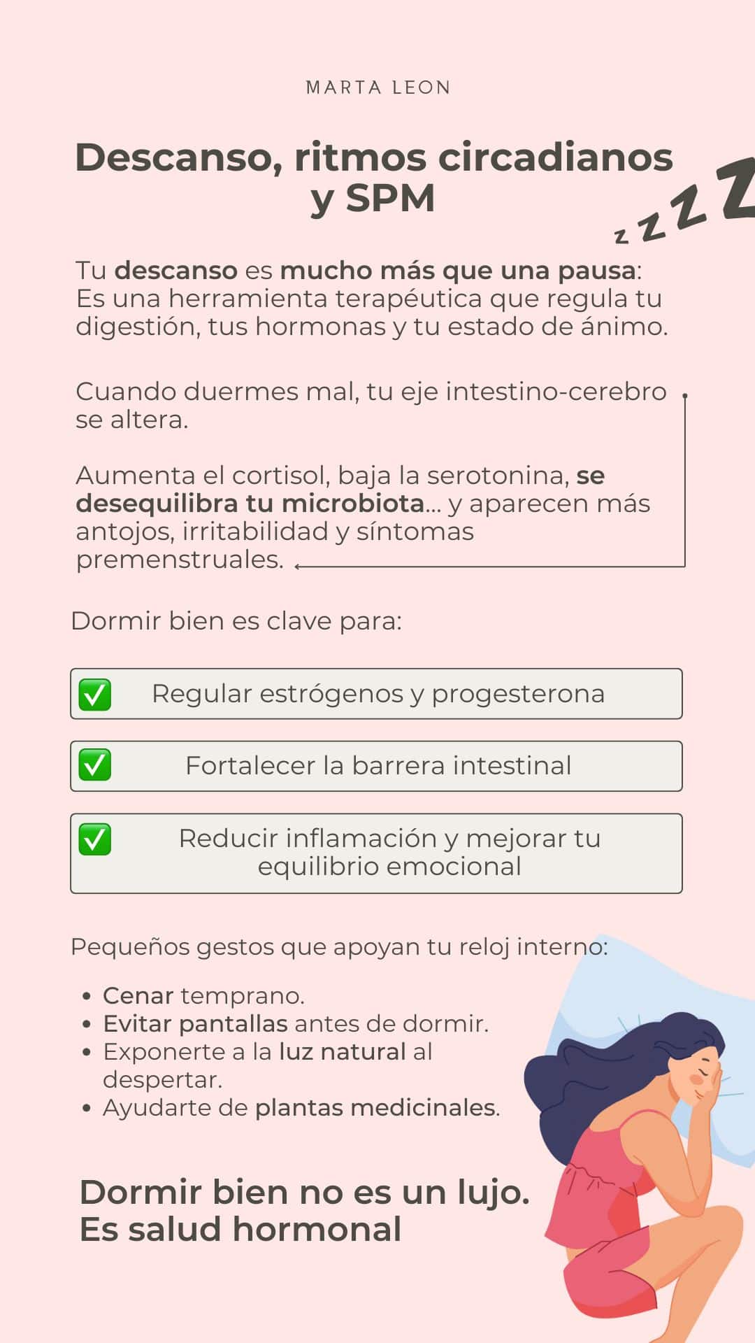Eso es porque la falta de sueño afecta directamente a la microbiota, al equilibrio hormonal y a la producción de neurotransmisores como la serotonina, que es clave para sentirnos bien, tranquilas y en equilibrio emocional.
