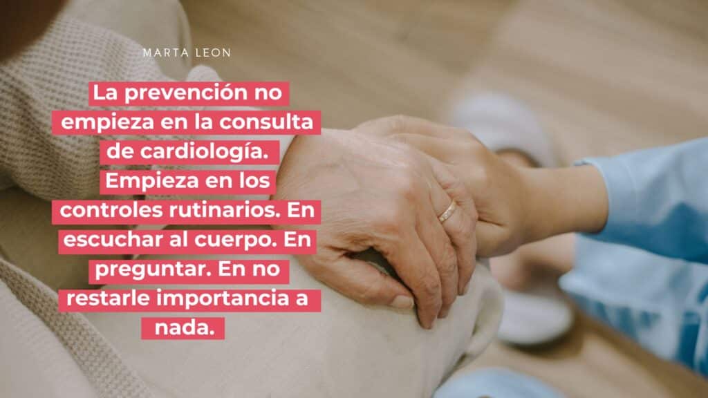 Por eso la Doctora Leticia trabaja en red con ginecólogas y médicas de atención primaria. Porque la prevención no empieza en la consulta de cardiología. Empieza en los controles rutinarios. En escuchar al cuerpo. En preguntar. En no restarle importancia a nada.