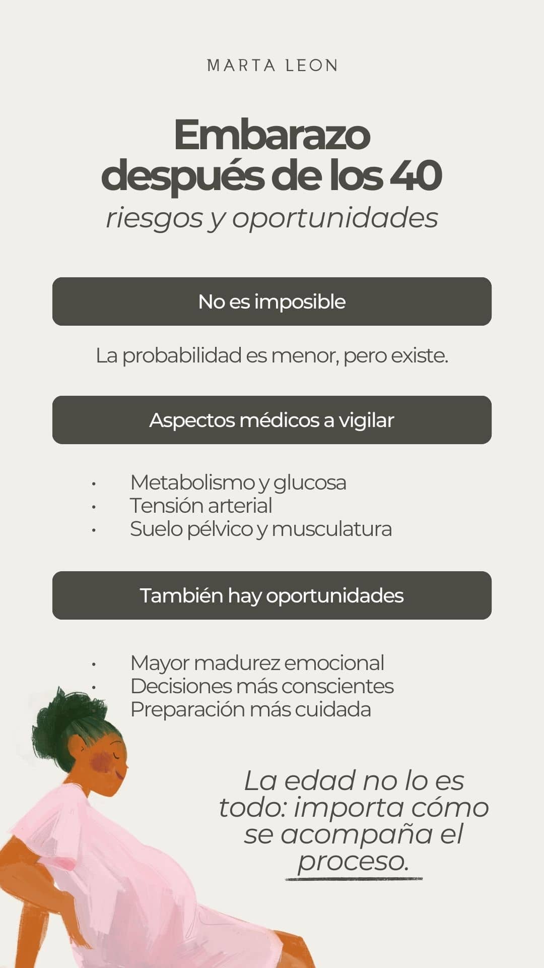Cuando se detectan y se cuidan estos aspectos con antelación, muchas mujeres viven embarazos sanos y llegan al parto en buenas condiciones físicas y emocionales, independientemente de la edad.