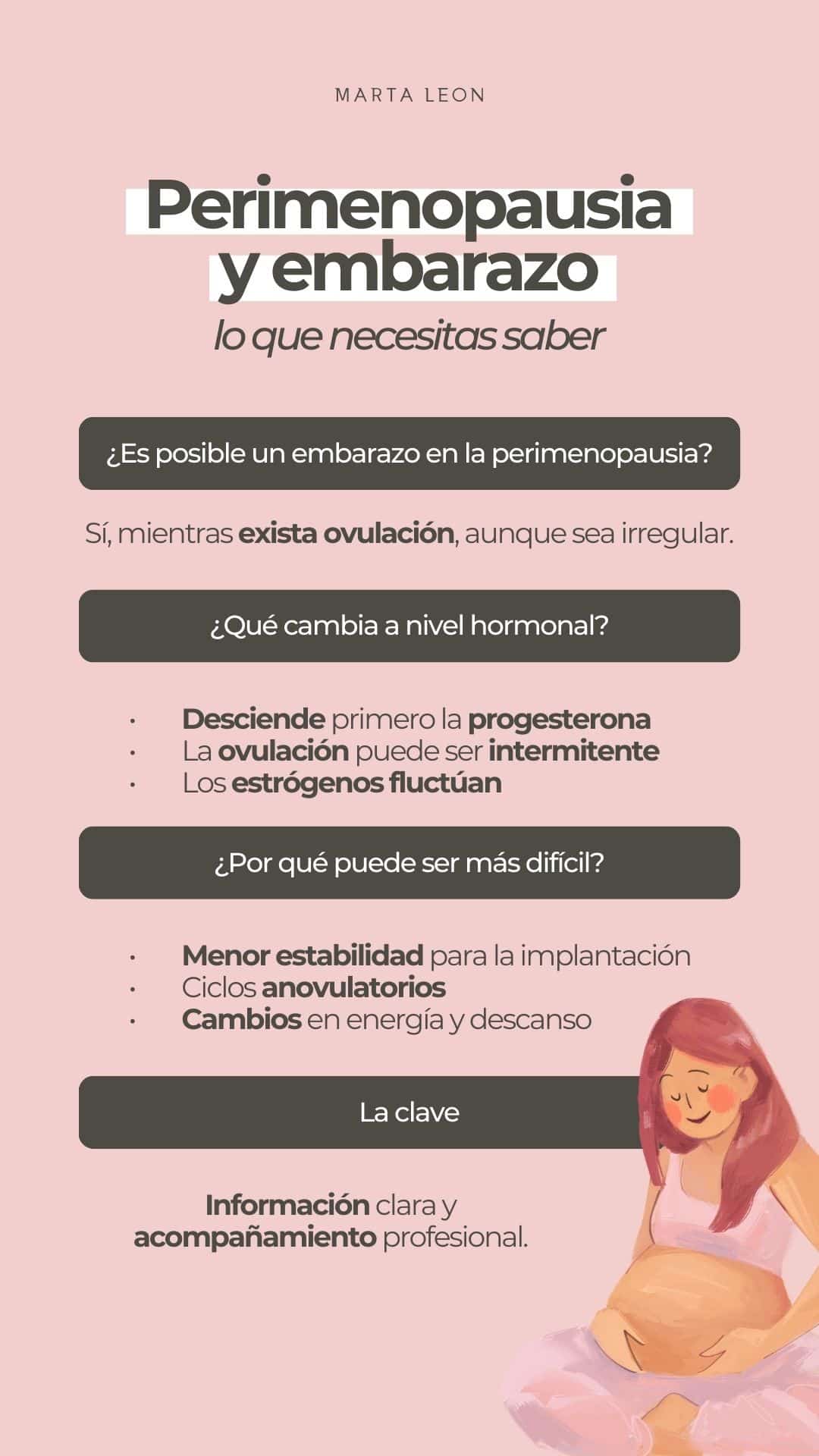 Por eso, hablar de embarazo en perimenopausia no es hablar de imposibilidad, sino de menor probabilidad, y de la importancia de entender qué está ocurriendo en el cuerpo para poder tomar decisiones informadas y realistas.