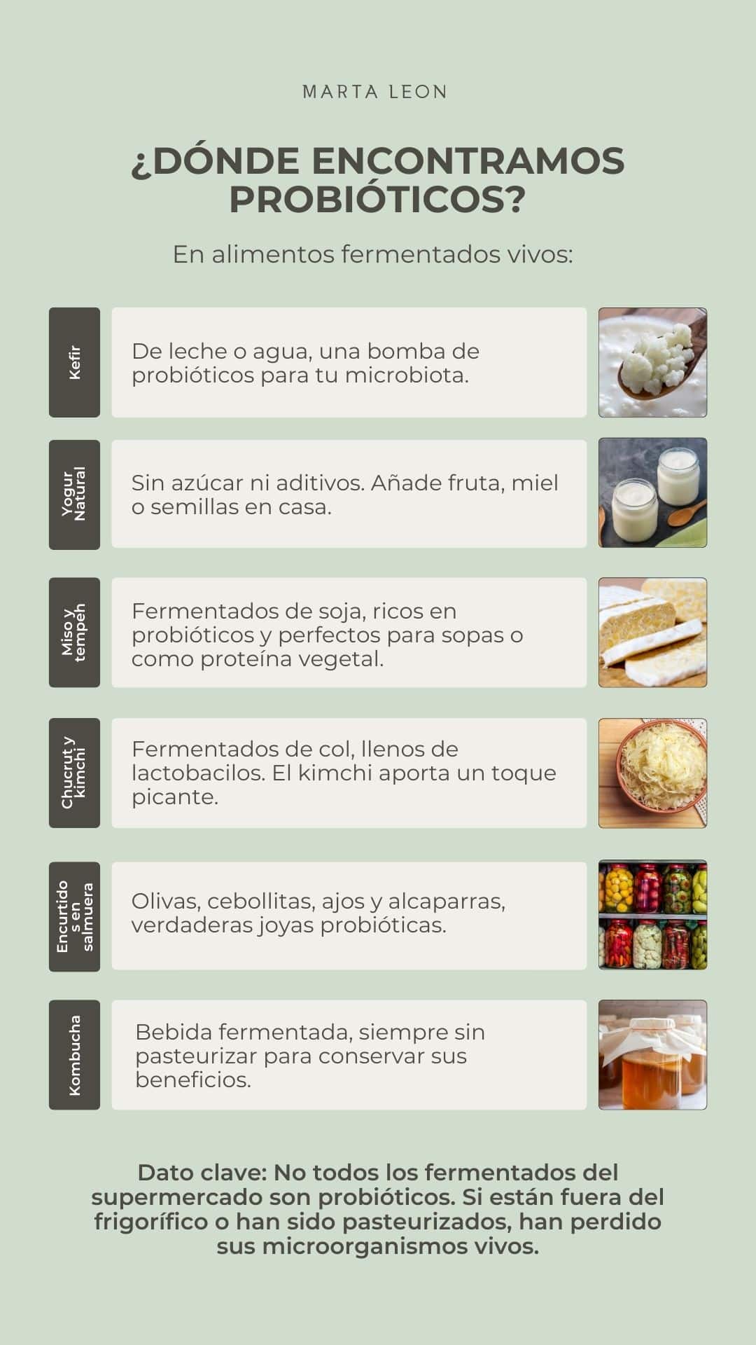 Ahora, un consejo importante: no todos los fermentados de los que hemos hablado y ves en el supermercado son probióticos. Si están fuera del frigorífico o han sido pasteurizados, no sirven igual.