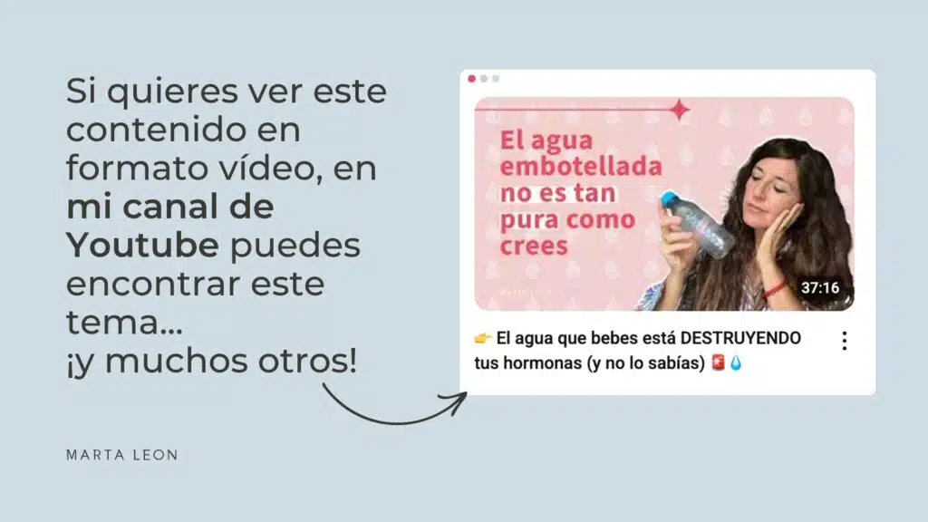 Ya sé que este tema es complejo, pero con información clara y pequeñas acciones puedes mejorar muchísimo la calidad del agua que bebes. Y al hacerlo, no solo estarás cuidando de tu salud hormonal, sino también de tu energía, tus tejidos y tu bienestar general.