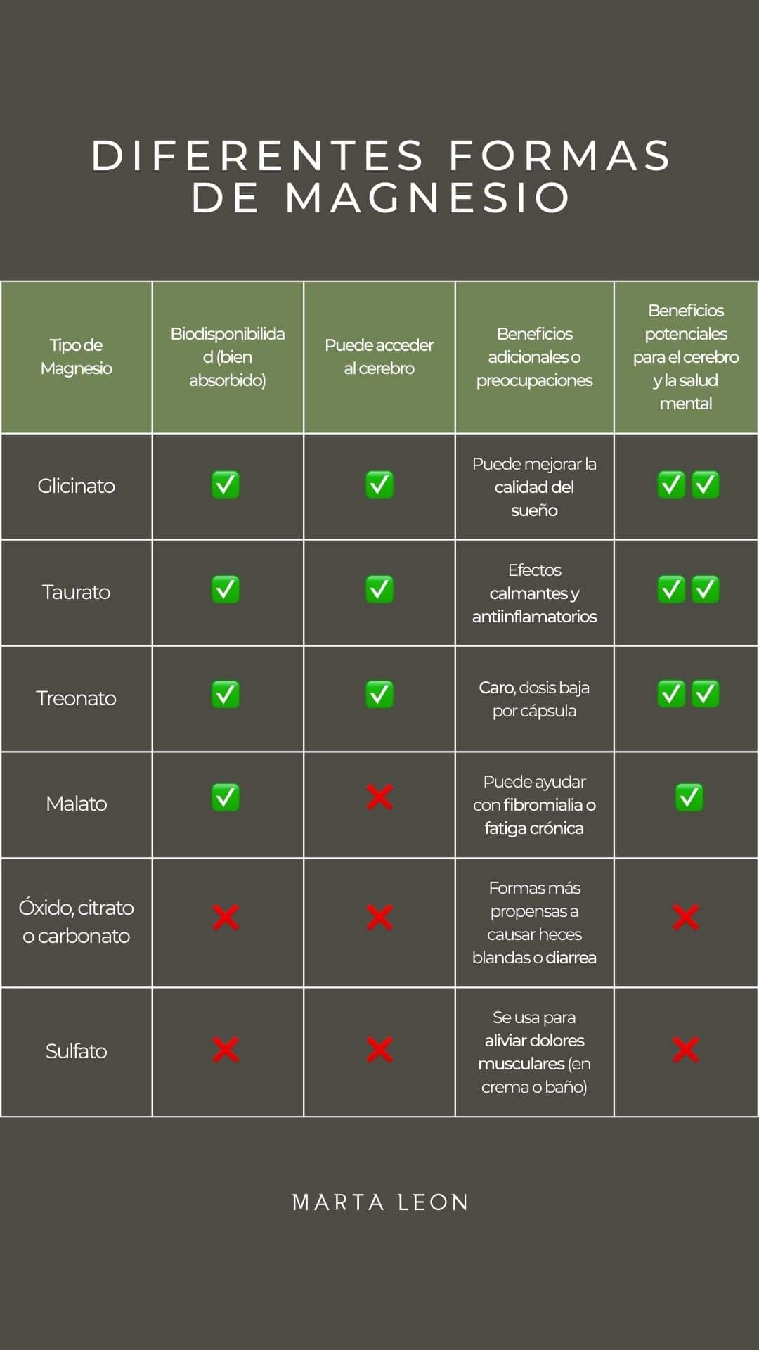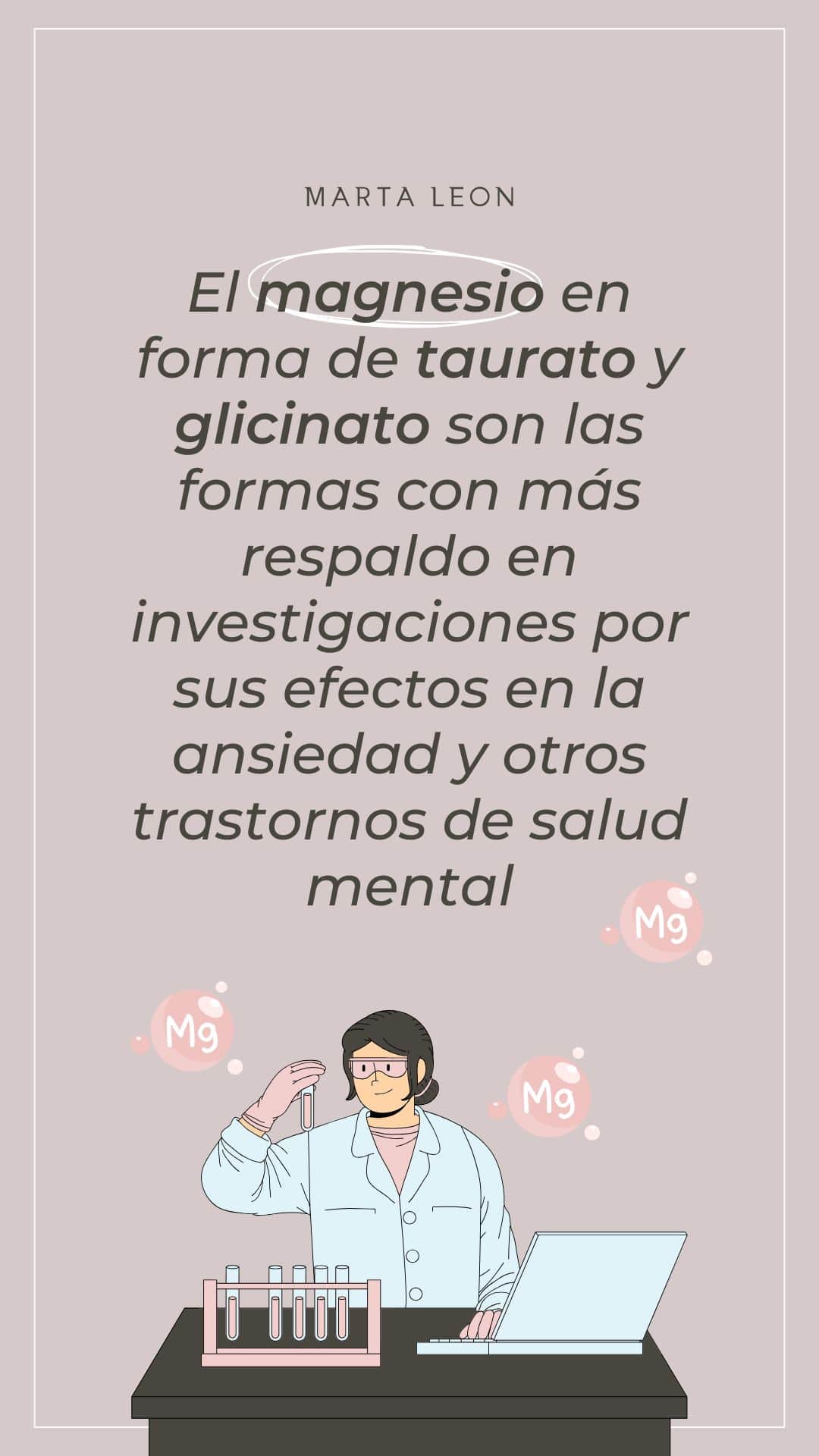 De hecho, según lo que sabemos hoy en día, el magnesio en forma de taurato y glicinato son las formas con más respaldo en investigaciones por sus efectos en la ansiedad y otros trastornos de salud mental.