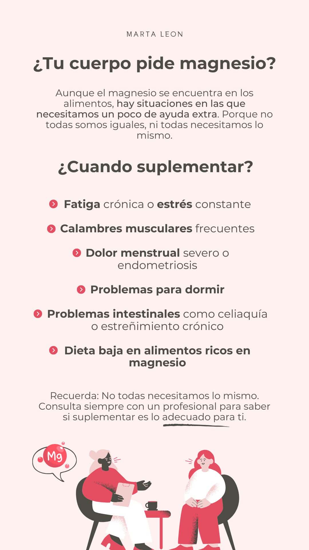 Eso sí, también es verdad que aunque el magnesio se encuentra en alimentos, hay situaciones en las que necesitamos un poco de ayuda extra. Porque no todas somos iguales, ni todas necesitamos lo mismo: