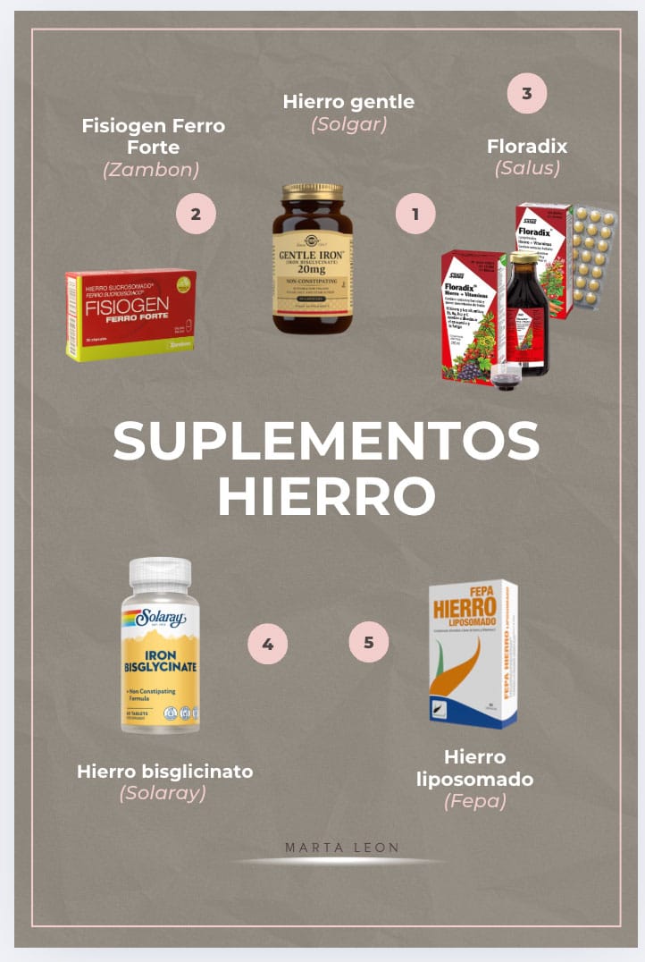 En estas recomendaciones priorizo formas de hierro no heme de alta biodisponibilidad y excelente tolerancia: